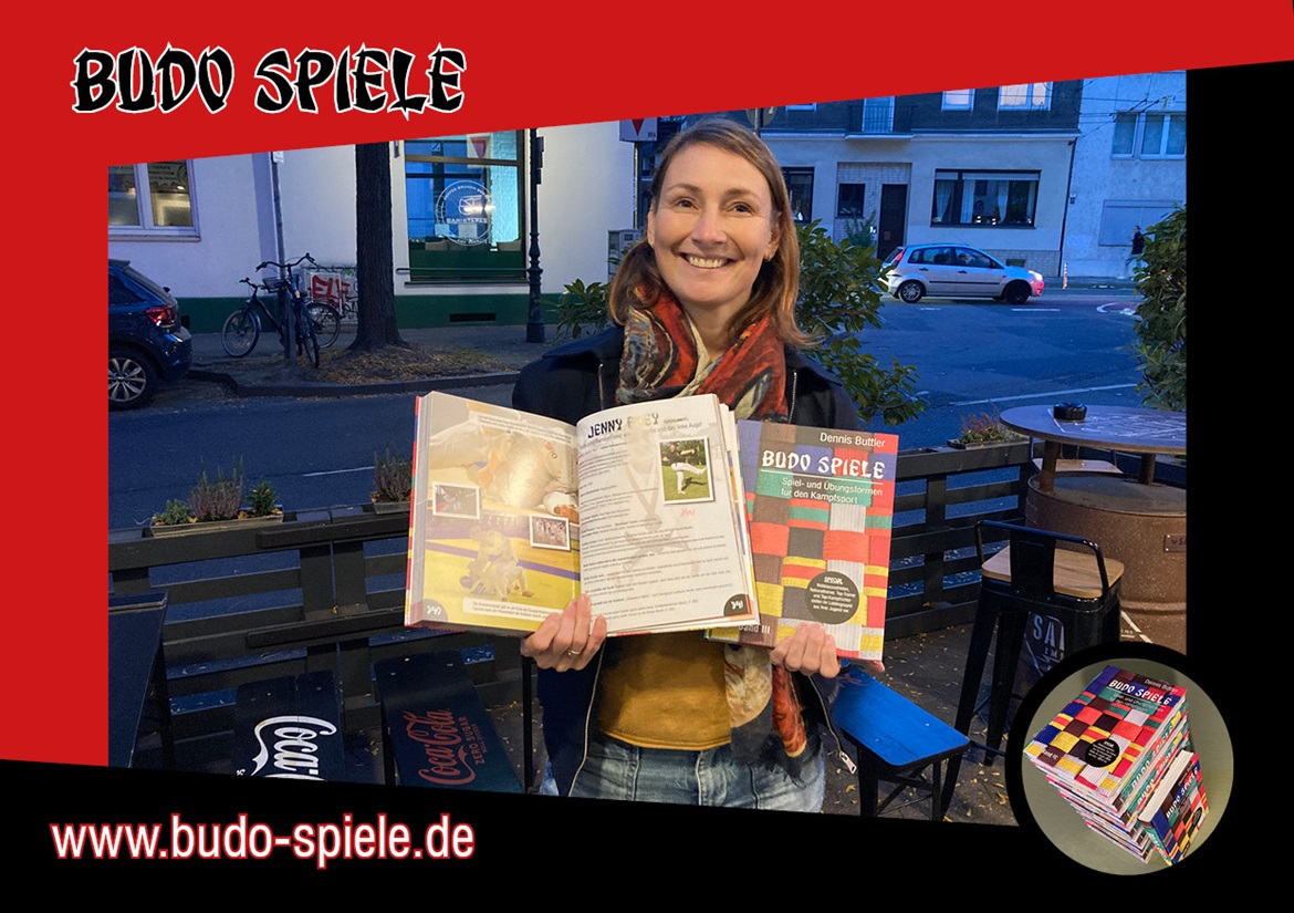 Noch eine Fan-Doppelseite ist im dritten Band Budo Spiele einer weiteren starken Frau gewidmet. Dieses Mal eine sehr engagierte Person aus dem Deutschen Judobund: Jenny Frey. Keine Ahnung, woher sie immer diese Energie und Zeit nimmt, aber das ist wohl die Leidenschaft für unseren Sport. Sie ist nicht nur seit Jahren in der Kata-Nationalmannschaft aktiv - das auch noch sehr erfolgreich als Weltmeisterin - sondern auch DJB Vizepräsidentin, "nebenbei" auch im NWJV Präsidium, dem größten Landesverband im DJB, ebenso der Motor der neuen Taiso Bewegung und jedes Jahr unermüdlich bei der DJB Sommerschule sowie vielen anderen Trainerfortbildungen im Einsatz. Zudem sind Jenny und ihr Uke die ersten Frauen im DJB, die per Prüfung den 6. Dan bravourös gemeistert haben.