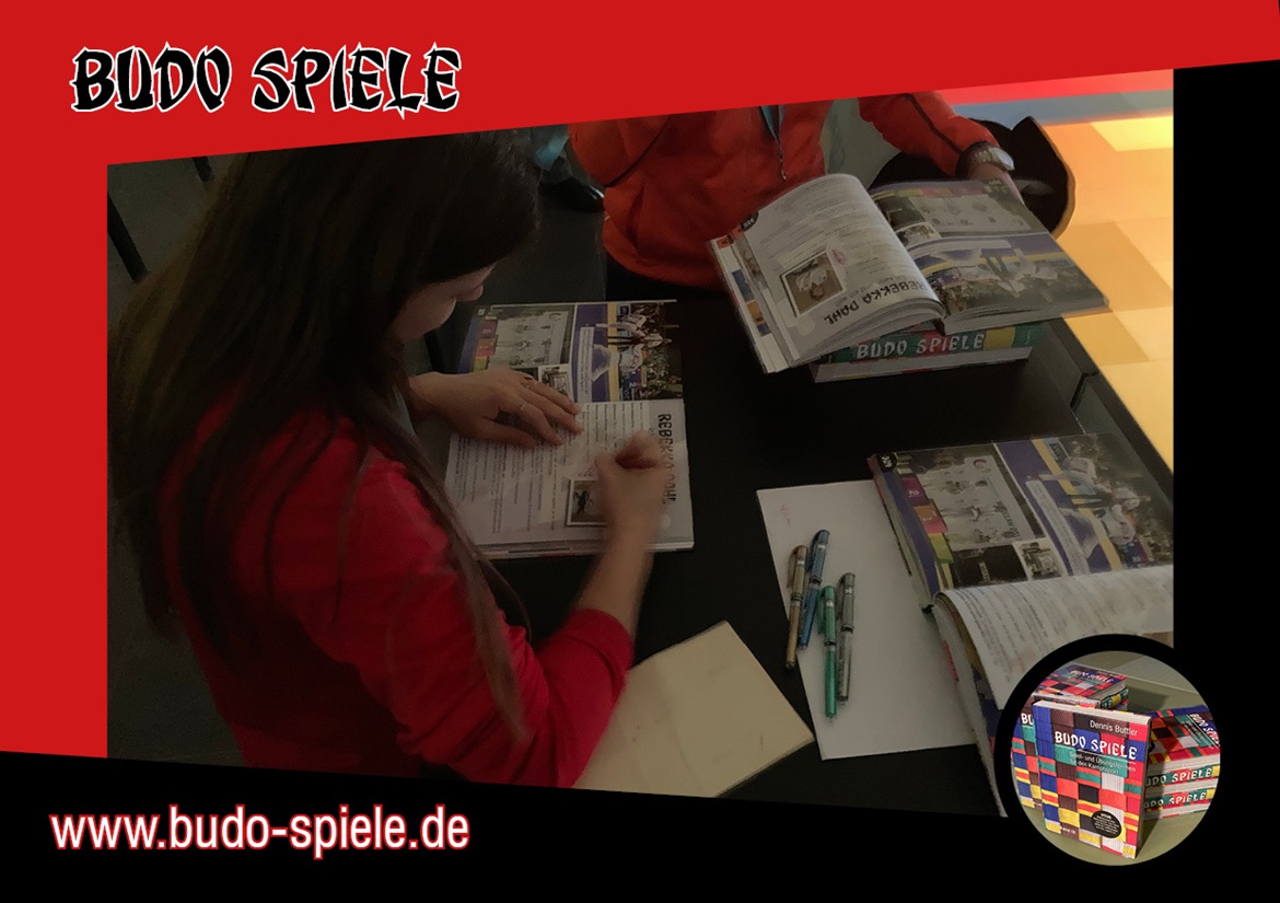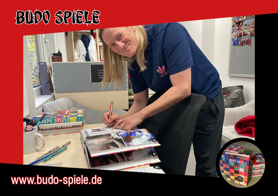 Und hier kommt die nächste starke Frau, die in Band III vorgestellt wird: Aafke van Leeuwen aus den Niederlanden wurde mehrfache Weltmeisterin und hat jahrelang das Wettkampfgeschehen stark dominiert. Nach ihrer sehr erfolgreichen Wettkampflaufbahn bleibt sie unserem Sport erhalten und gibt ihr Wissen als Trainerin weiter. So betreute und coachte sie bei den Ju-Jutsu Europameisterschaften die niederländischen Athleten. Zwischen Coachen und Wettkampfgeschehen verfolgen nahm sich auch die Zeit, um einige Bücher für den guten Zweck zu signieren. Wunderbar, vielen lieben Dank!Auch ihr Lieblingsspiel, das in Band III vorgestellt werden konnte, wird viele Kampfsportler begeistern und ihre Fähigkeiten mit viel Spaß verbessern.