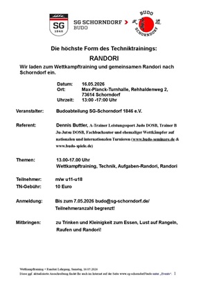 16.05.2026 Wettkampftechniken Stand/Boden - Budo Spiele - Aufgabenrandori - Randori bei der Budo SG Schorndorf / Baden-Württemberg